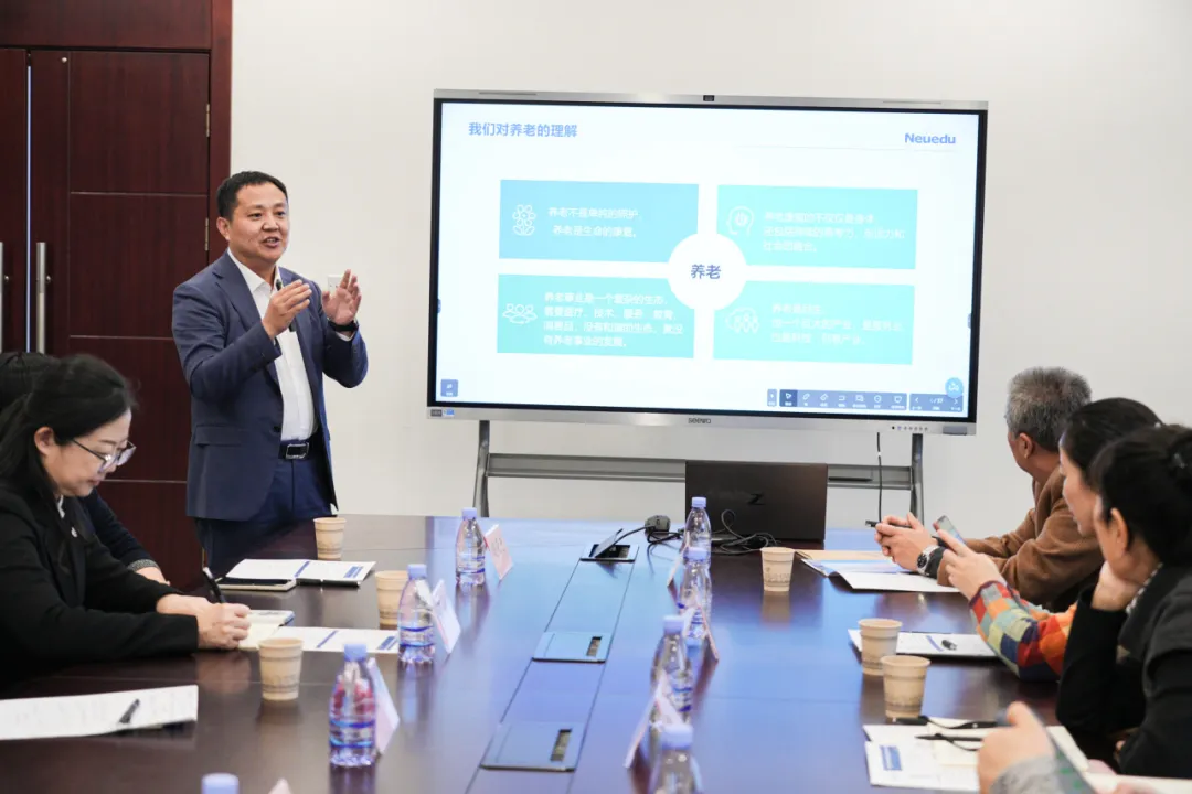 在随后的研讨会上,王星辉副总裁热烈欢迎协作组拜访。他详细介绍了球盟会(中国)大健康领域产业布局,展示了球盟会(中国)教育全面满足老年需求的“教-医-养-康-旅”的老年教育模式。同时,球盟会(中国)教育将全力发挥自身优势,加大养老科技产品研发与推广力度,利用科技手段提升养老服务品质,包括智能监测设备、线上服务平台等,以此有助于养老科技产业开展,为老年人创造更优质的晚年生活,为养老行业注入新动力。