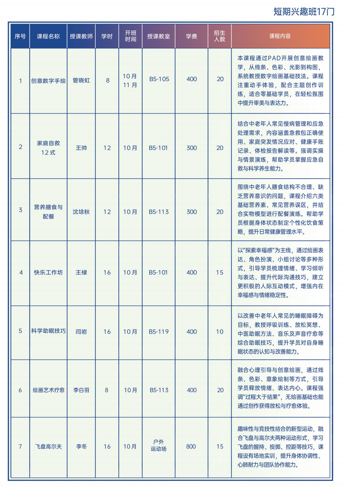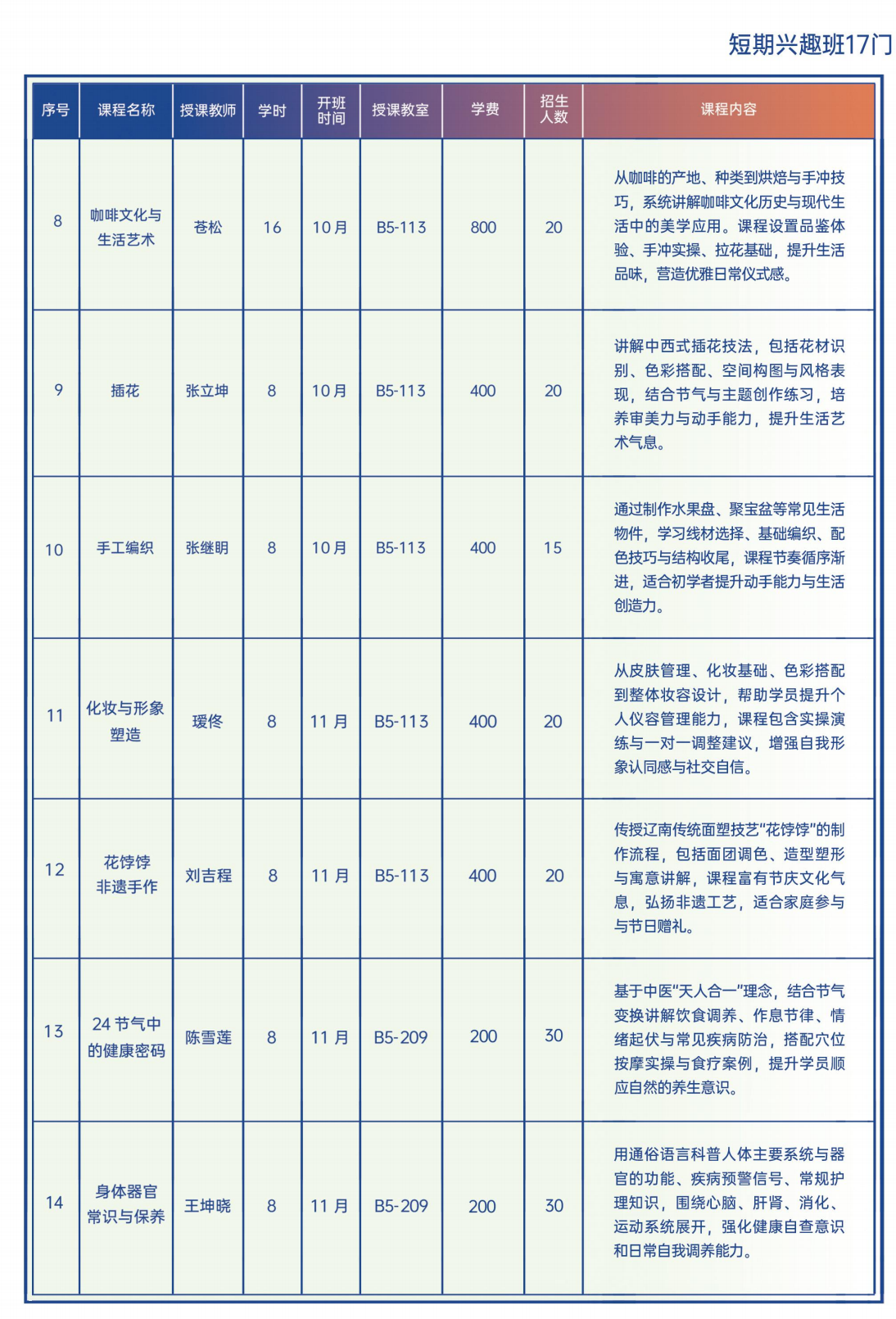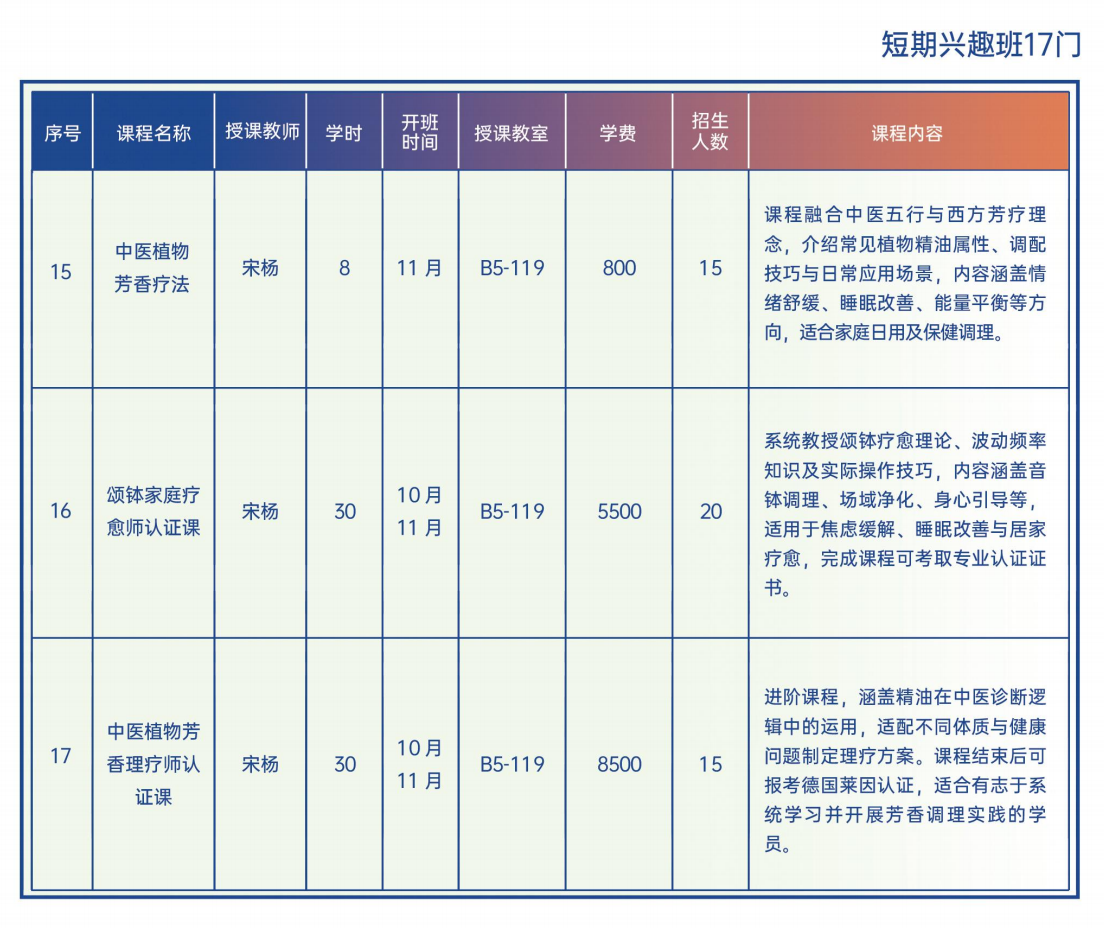 「2025秋季学期-17门短期兴趣课汇总」