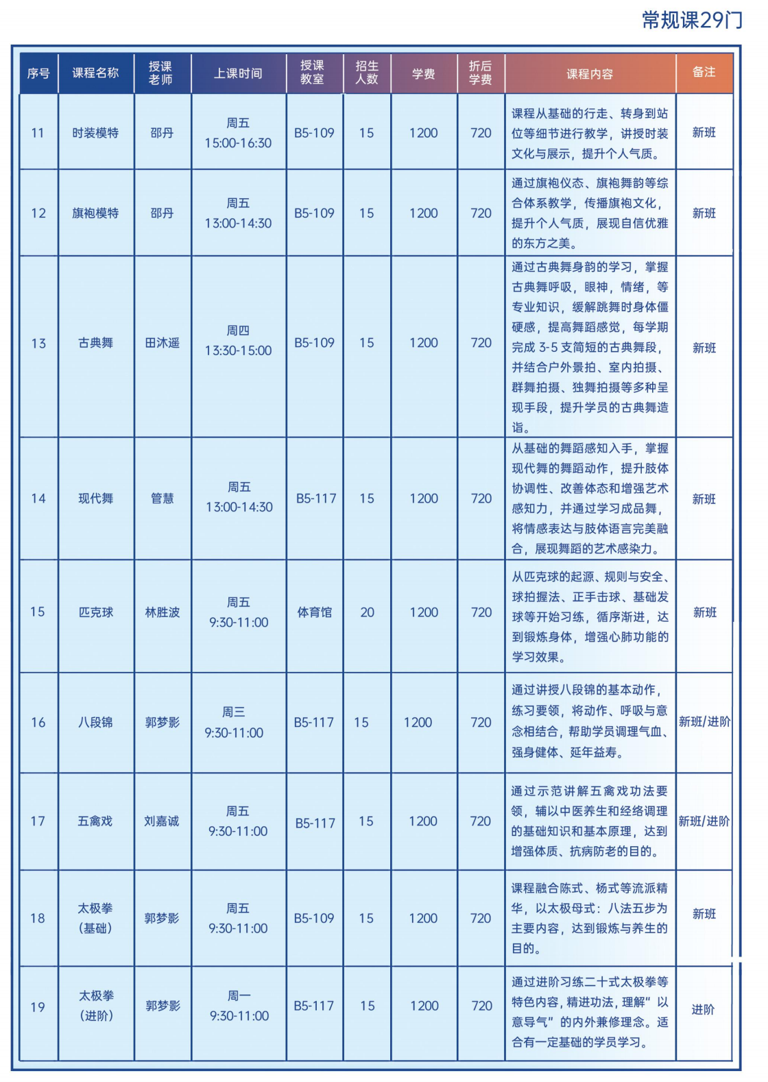 4.课程安排和时间可能会根据实际情况调整,请关注学校通知;